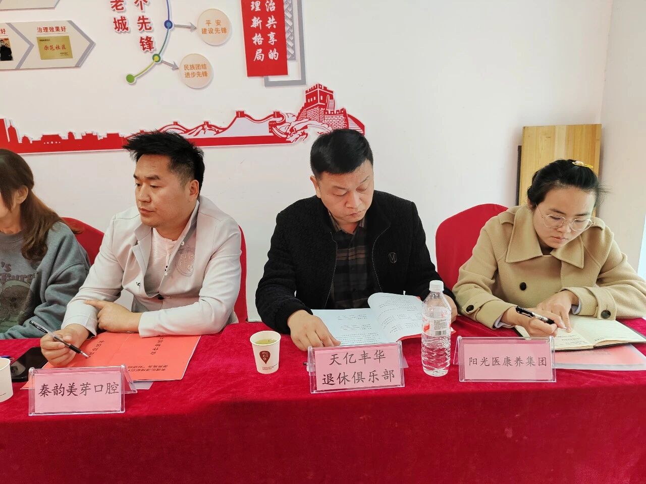 签约仪式上,培新街社区党委书记周明华与天亿丰华公司代表石君分别代表双方签署合作协议。社区党委、居委会成员、居民代表及公司相关负责人共同见证了这一重要时刻。