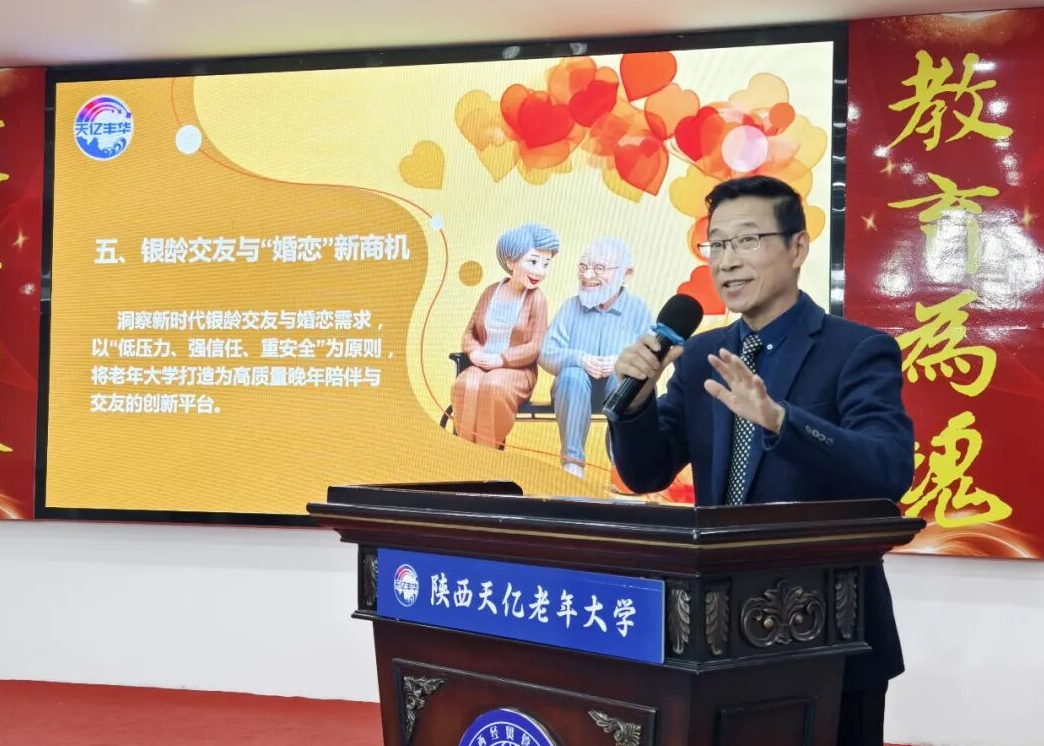 会议围绕老年大学新生态展开研讨,陕西天亿丰华健康管理公司董事长李刚、总经理杨鹏、天亿丰华商学院院长许庆飞、老年大学活动策划总监江小琦、细胞中心总经理张振等代表先后作专题报告。会议以“学、养、游、乐、康”五位一体的创新型老年教育模式为核心议题,深入探讨以“教育+康养+游学”为载体的老年服务新生态。