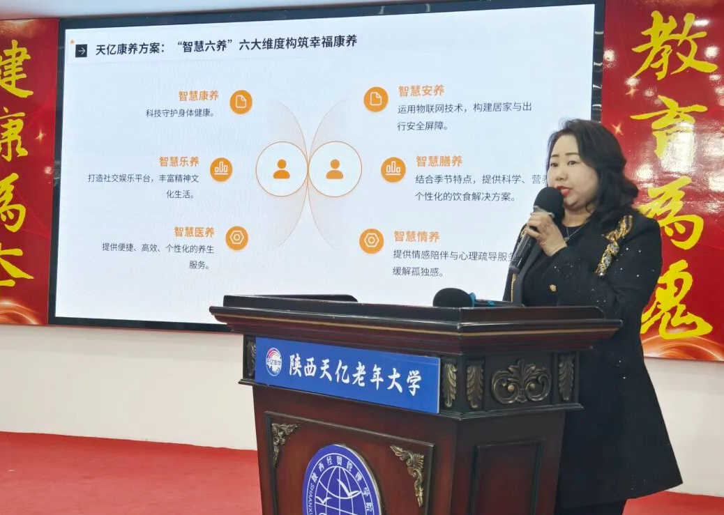 会议在热烈氛围中拉开序幕。陕西经贸管理专修学院法人代表、天亿老年大学校长李超致欢迎辞,向与会嘉宾表达诚挚问候,并阐述了在老龄化社会背景下推动老年教育转型升级的紧迫性与重要意义。天亿老年大学学员还为会议献上精彩演出,展现出新时代老年人积极昂扬的精神风貌。